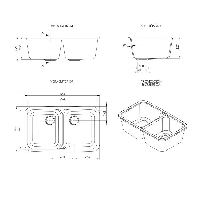 ¡Transforma tu cocina en un oasis de estilo y funcionalidad con nuestra pileta para cocina doble en superficie sólida Tresol! Con unas dimensiones perfectamente equilibradas de 780 mm de largo, 475 mm de ancho y una profundidad de 255 mm, esta pieza de alta calidad es la elección ideal para tu espacio culinario.