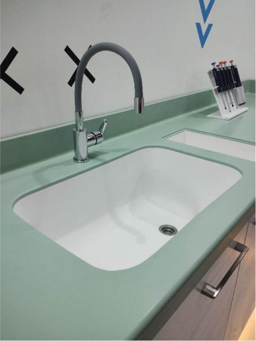 Las Piletas Tresol permiten integrarse a placas Tresol® para lograr un aspecto monolítico de una sola pieza y permitir así un acabado de estética y asepsia superior. Aptas para baños, cocinas, lavaderos, laboratorios, las piletas Tresol® también pueden combinarse con otros materiales.