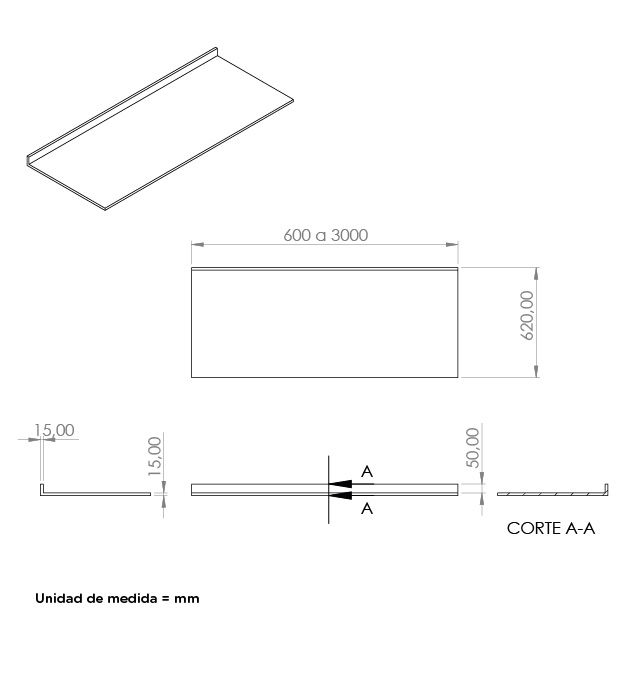• Medidas : 1600 mm x 620 mm x 15 mm